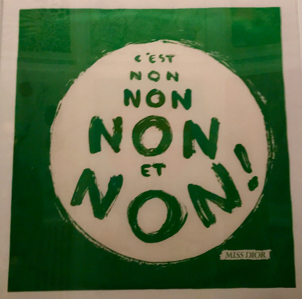 When I saw this silk scarf at a Dior retrospective, I could relate. It spoke to that voice in my head that was my own worst critic. It is no, no, no, and no. No you can’t, no you aren’t, no you won’t. It goes on and on.