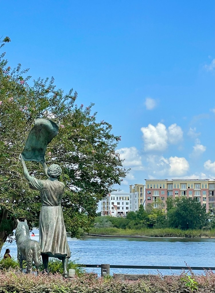 In 1972 a bronze statue of Florence Martus by well known artist Felix De Weldon, was erected on River Street along the bank of the Savannah River in her memory.