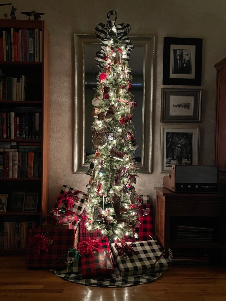 I love that book, but haven’t finished reading it yet. Joy dwells inside of us and it’s fun when our eyes land on something to spark that joy. I think life is full of moments of joy, but it’s a matter of slowing down long enough to capture a glimpse of them because they are fleeting. Like, waking up before the sunrise completely unplanned and getting to watch it rise. Walking to the mailbox sparks my joy and seeing a note inside from you causes joy in abundance. Seeing this photo of your tree and how it matches your gifts, sparks joy. Thank you for the note and Merry Christmas to you too my darling. 🎄 PS. LOVED your pinecone stamp!!! All joy!