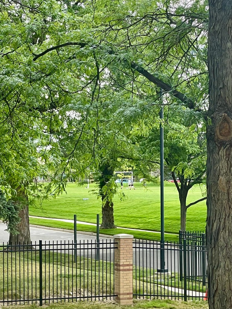Elementary schools have changed a great deal since I was a student. The school across the avenue from our condo is private, with lush green lawns and ancient trees, surrounded by a fortress of lofty wrought iron fences connected with tall brick pillars. Electric gates open and close to allow the community access.