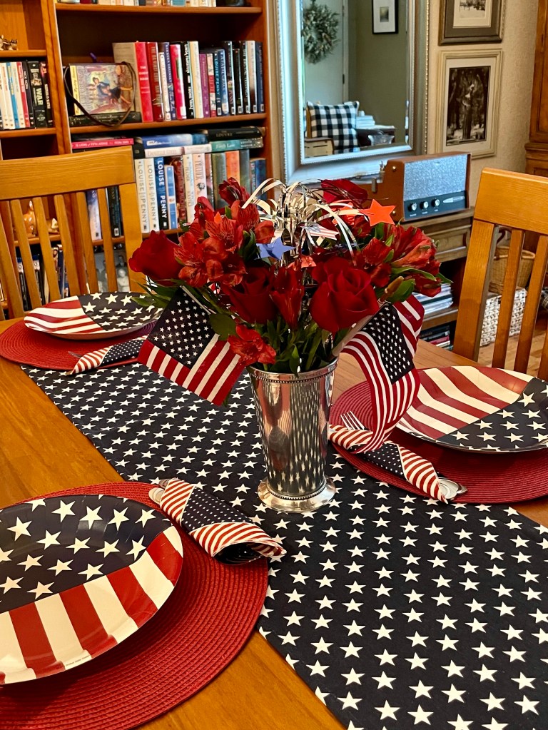Well, we’re back to the Fourth of July. This brings me to a new revelation. Many people take photos of beautifully arranged plates of food. On the other hand, I prefer to capture beautifully set tables, without the food. I believe the underlying message is that I’d rather not look at food if it means I have to cook it. I realize that for a woman of my generation to make that statement is akin to admitting a character flaw.