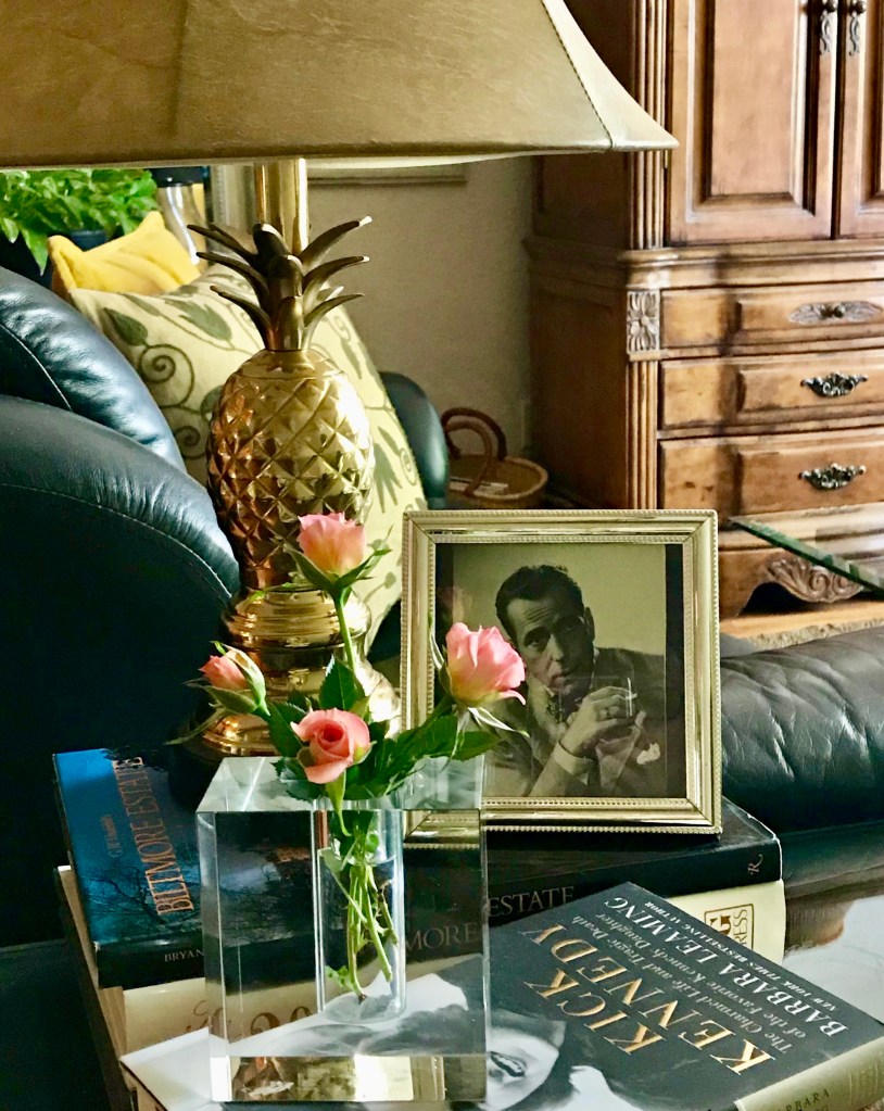 This is one of my favorite photos of our living room. To me, it embodies comfort and calm, representing a peaceful retreat from the chaos of everyday life. It’s a sanctuary where I can unwind and recharge. As an aside, I must admit that a friend gave the Bogart photo as a joke. He’s not a relative, but the whimsical touch adds character to the room. Over the years, this space has changed somewhat, but I’ve worked to maintain its calm and relaxing atmosphere. When I walk in, I want to leave outside stress behind and indulge in the space I’ve created. It’s a soft space designed for a soft life, where I can savor moments of tranquility and appreciate the simplicity and beauty surrounding me.