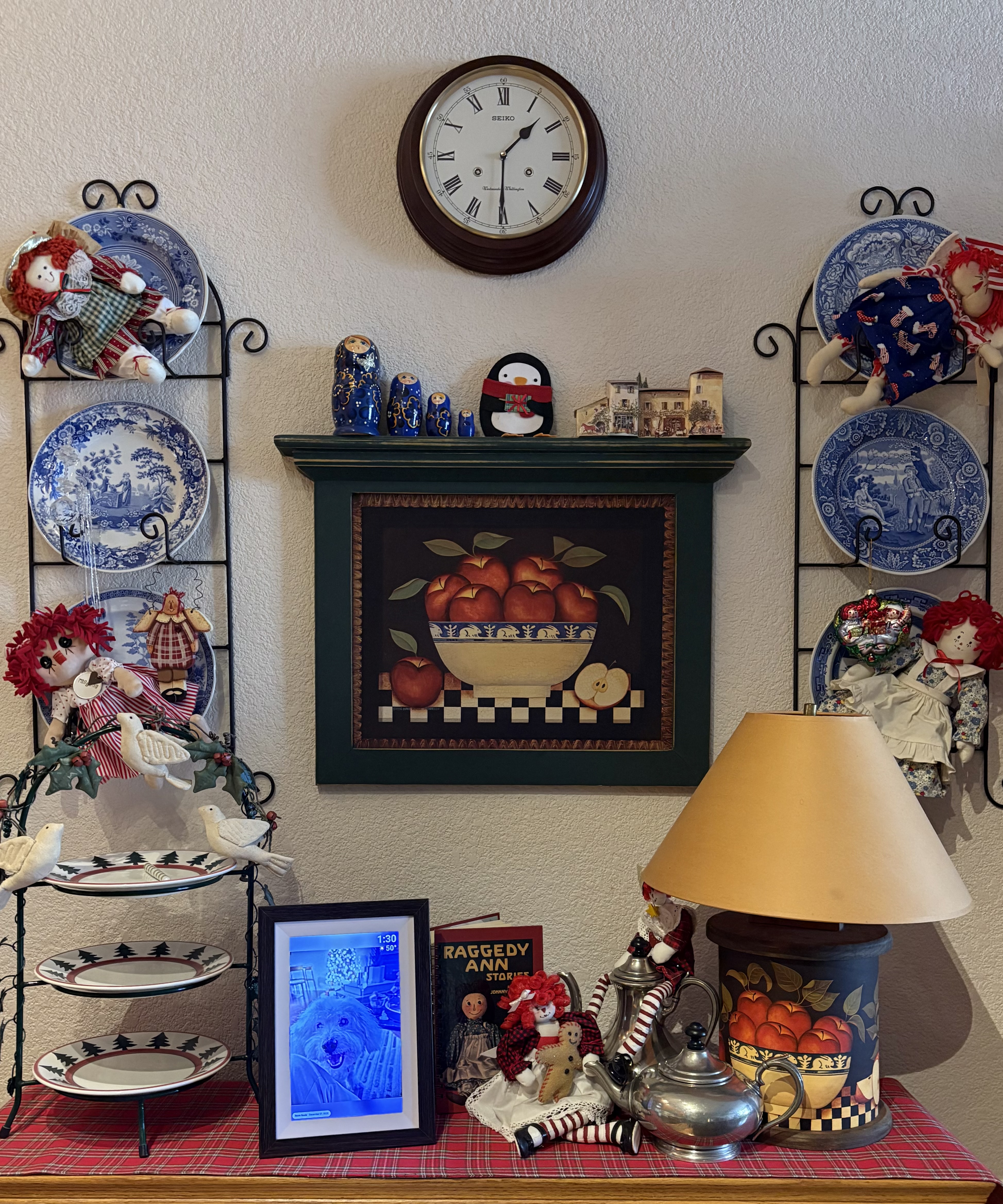 Another Christmas is almost here. I spent some time decorating the house and porch last week, which was an enjoyable project filled with festive music and the cheerful spirit that this season brings. I mentioned in my last post that I decided to give away my Christmas Village, a bittersweet decision as it held a special place in my heart. However, as the photos above show, there are many other decorations that are part of our family celebrations, each with its own story to tell and memories to evoke. This year, after I filled a basket with greens and berries, I briefly considered not putting up the tree and placing the gifts around the basket. That thought quickly passed, though, as I realized the joy that the decorated tree brings to our home. There are so many ornaments with memories from years past that I couldn’t imagine not displaying them, from handmade creations by our family to treasured pieces passed down from previous generations. I know that there might come a time when Christmas decorating isn’t physically possible for me to do, but thankfully that time hasn’t arrived yet, and I find comfort in the rituals that continue to connect our family during this special time of the year.
